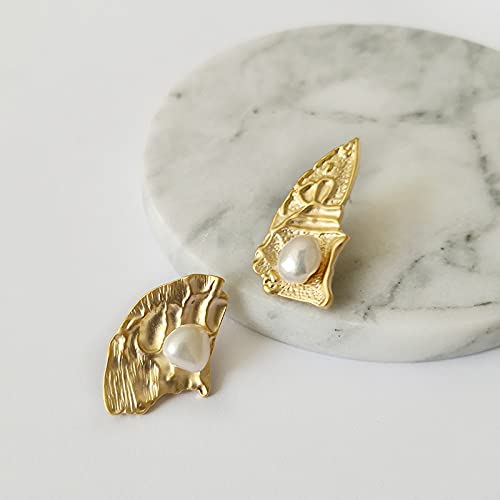 Orecchini in Oro con Texture Irregolare Orecchini con Perle Geometriche Bianche Orecchini Asimmetrici con Stelle Marine per Donna