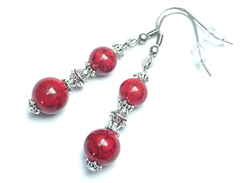 Orecchini Thurcolas pendenti in stile chic e classico in turchese ricostituito rosso e acciaio inossidabile