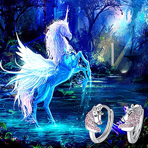 2.Orecchini Unicorno Argento 925 Cerchi: La parte metallica di questo paio di orecchini è in argento 925, e il contenuto d'argento raggiunge lo standard internazionale (non parte dell'argento o placcato argento), orecchini ragazze non è allergico.