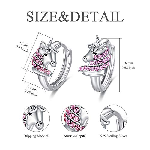 Orecchini Unicorno Bambini Argento Sterling 925 Cerchi con Cristalli, Gioielli Regalo di Compleanno per Ragazze Donne (Rosa)