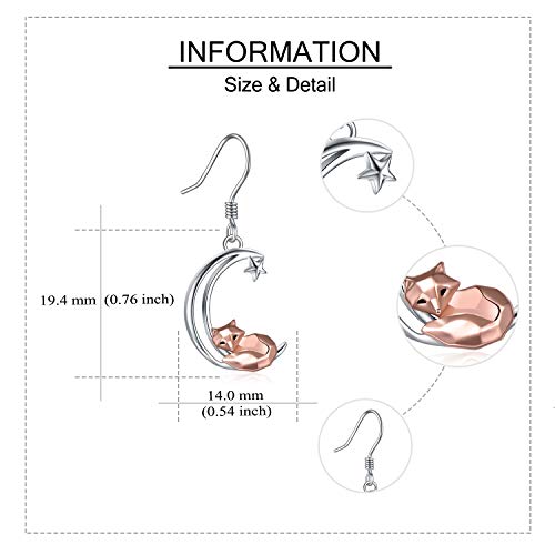 Orecchini volpe in argento sterling per le donne Orecchini pendenti con luna di volpe origami Regalo per la festa della mamma per le donne mamma