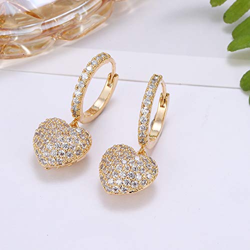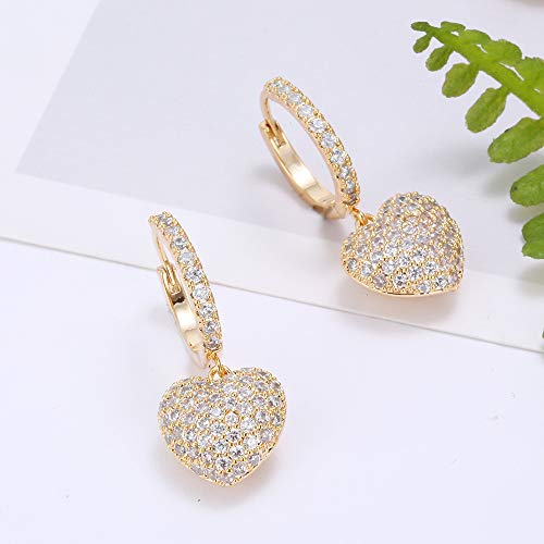Orecchino a cerchio da donna a forma di cuore, orecchini a goccia ipoallergenici placcati in oro rosa e argento con cristalli di zirconi (Placcato oro)