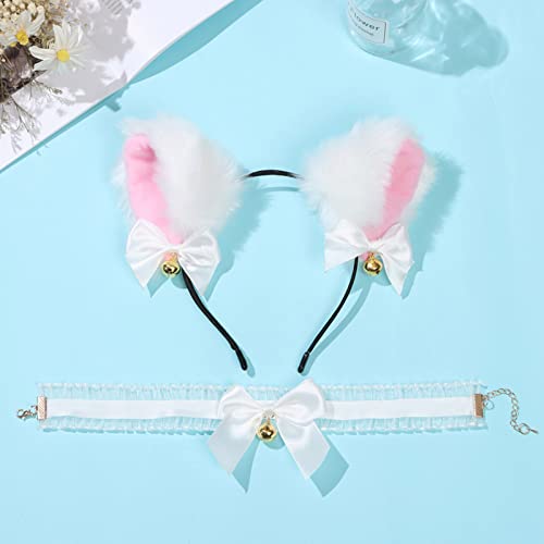 Orecchio Di Gatto Serra Tete Cosplay Anime Orecchie Fascia Con Campane Fascia Collana Carino Confortevole Per Lolita Cosplay, Anime, Compleanno, Halloween, Natale, Pasqua Ecc—Bianco