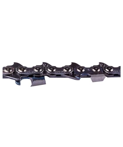 This saw chain's bumper drive links reduce kickback, ideal for cutting hardwood and seasoned timber