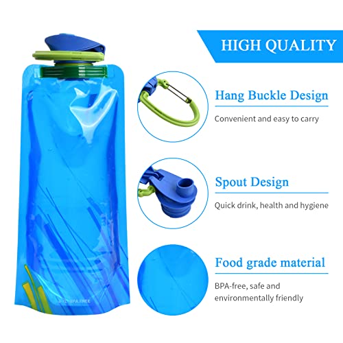 【Pacchetto e capacità】: il pacchetto include 3 bottiglie d'acqua pieghevoli, ci sono 3 colori di bianco, blu e nero con stampa a strisce. La capacità di ogni sacca d'acqua pieghevole è di 700 ml. È sufficiente e comodo da usare o condividere con i tuoi amici durante le attività all'aperto.