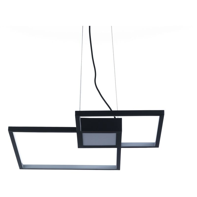 Lampadario RHOS BLACK - realizzato in metallo colore Nero opaco (esterno) silicone Bianco opaco (interno) - LED in dotazione non sostituibile (70000 ore di vita) - LED 25W - 3000K - dimensioni cm. L.54 P.54 H.8 - luce grande cm.40x40 - luce piccola cm. 30x30 - luce centrale cm. 12x12 - Voltage 220V 50HZ -- filo elettrico cm.80 regolabile