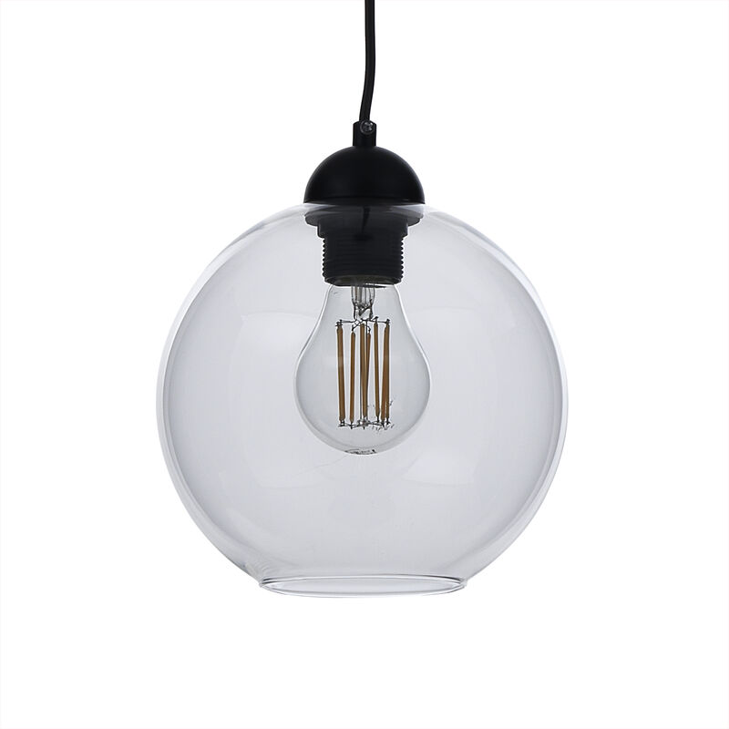 Lampadario SHELBY - paralume realizzato in vetro trasparente - dimensioni paralume Ø20 - filo elettrico nero cm.100 regolabile - predisposto per nr.1 lampadina E27 max 40W (non in dotazione)