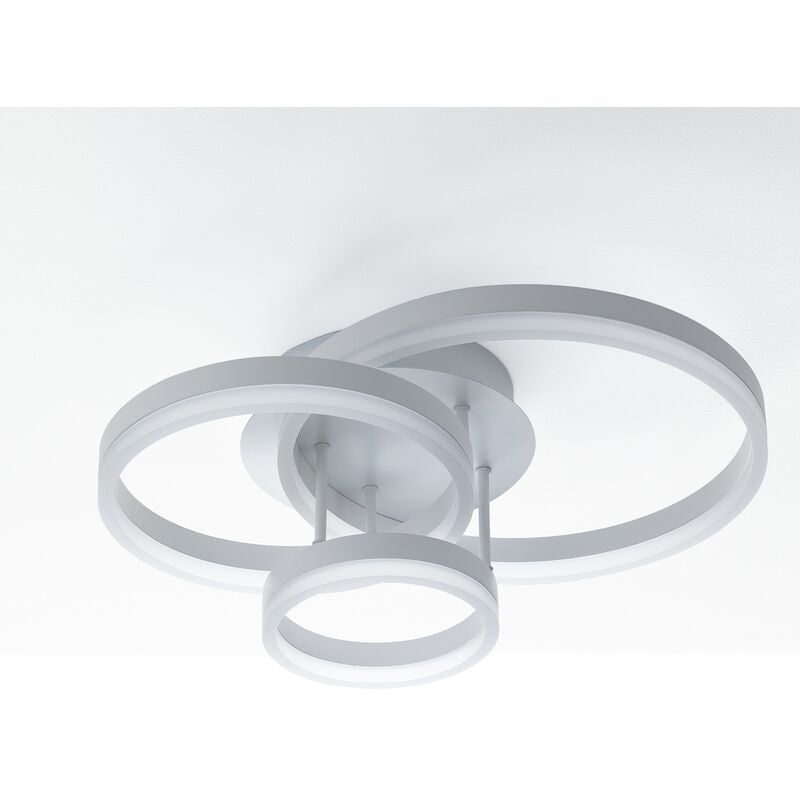 Plafoniera / Applique WEM WHITE - realizzata in metallo colore Bianco opaco (interno) silicone Bianco opaco (esterno) - LED in dotazione non sostituibile (70000 ore di vita) - LED 36W - 3000K - dimensioni cm. L.55 P.40 H.19 - dimensione anello grande cm. Ø.40 - dimensione anello medio cm. Ø.30 - dimensione anello piccolo cm. Ø.20 - Voltage 220V 50HZ