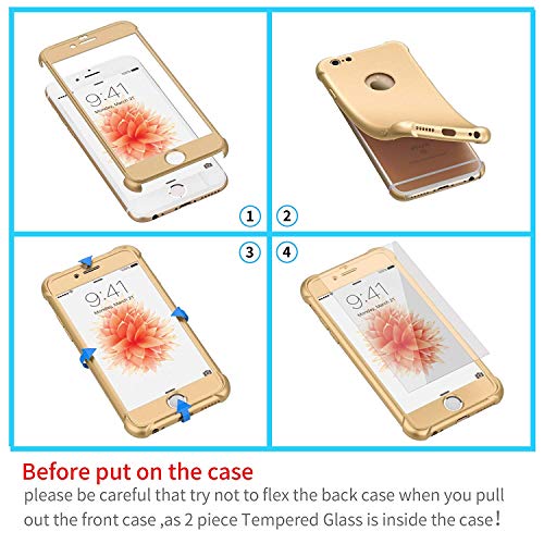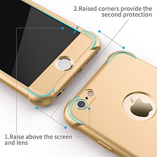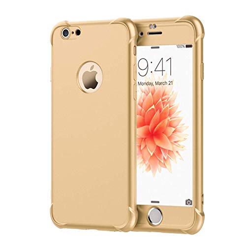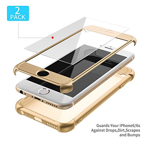 ORETECH Compatibile con Cover iPhone 6 e 6s con[2XPellicola Protettiva Vetro Temperato] 360 Antiurto 2 in 1 Ultra Sottile Gomma Hard PC TPU Silicone Anti Graffio Custodia per iPhone 6 e 6s Cover -Oro
