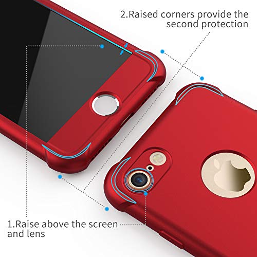 ORETECH Compatibile con Cover iPhone 7, Cover per iPhone 8, con [2 x Pellicola Protettiva Vetro Temperato] 2 in 1 Ultra Sottile Hard PC TPU Silicone Anti Graffio Custodia per iPhone 7 8 Cover - Rosso