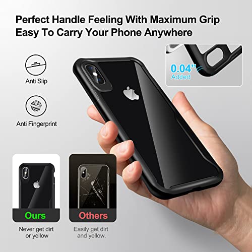 [sottile ma resistente agli urti]La custodia protettiva posteriore è solo 0,9 millimetri di spessore, che lo rende facile da far scorrere il telefono in & fuori la tasca e portare ovunque, il bordo a forma di metà progettato per iPhone XS Max, airbag anti-vibrazione sono aggiunti nei quattro angoli, che sono super drop-proof e hanno una forte protezione