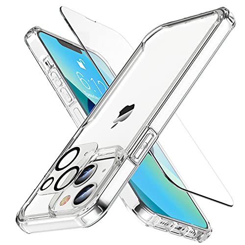 ORETECH Cover per iPhone 13 (6.1 Pollici),[2 Pezzi Pellicola Protettiva in Vetro Temperato & 1 Pezzi Pellicola Fotocamera] Custodia Antiurto Ultra Sottile Hard PC Silicone Cover iPhone 13- Trasparente