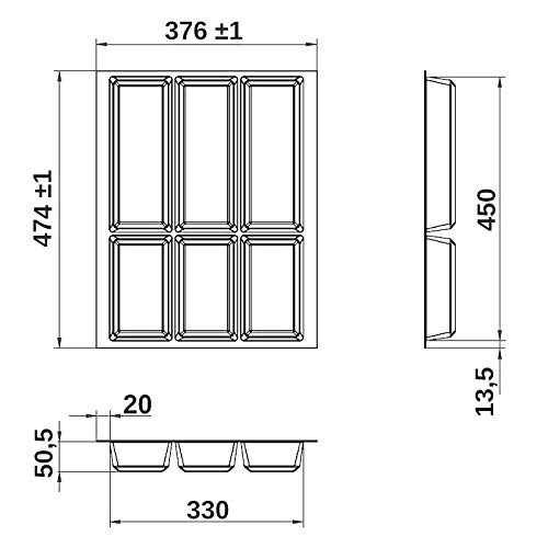 ORGA-BOX VII Design impiego di posate grigio basalto 376 x 474 mm cassetto di posate per Warendorf Beeck KH Schröder cucine con corpus di 45
