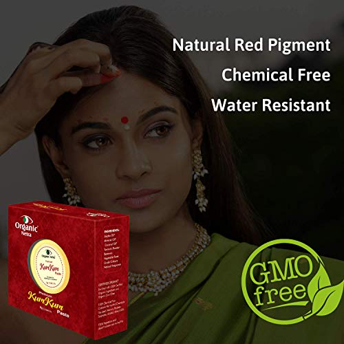 PERFECT FOR ALL SKIN TYPES: Since the materials used in crafting the Organic Netra Kumkum paste are 100% natural, they can be used on all skin types. The chemical free sindoor does not cause any irritation or skin conditions rather they are beneficial for the skin. The Organic Netra kumkum paste does not contain Lead, Sulphates, Parabens, Mineral Oils or Alcohol. It is Organic and Vegan.