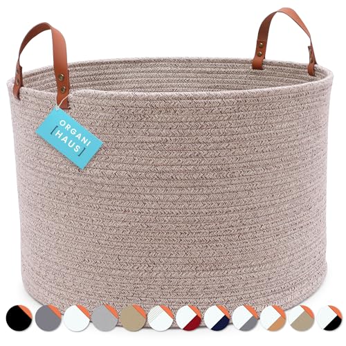 ⭐ Cesto Porta Oggetti in Corda di Cotone: queste ceste giochi bambini tonde in corda tessuta hanno meravigliosi manici in vera pelle super resistenti. È possibile utilizzare questo cestino oversize in lavanderia o nell'armadio, ma è perfetto anche da mettere in mostra in salotto o in soggiorno.