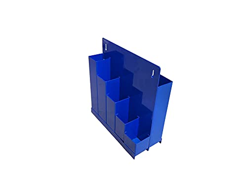 L'organizer per fascette è realizzato in acciaio e rivestito in blu. Le fascette stringicavo sono confezionate in sacchetti di cartone.
