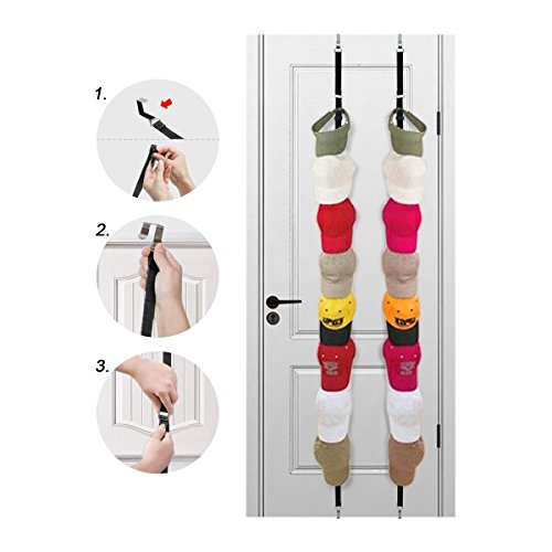 Facile da installare: non richiede nessun attrezzo. Si appende sopra alla porta, è realizzato in solido nylon e i ganci in plastica resistente saranno in grado di reggere pesanti carichi e fino a 16 cappellini.