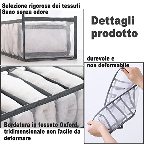 Organizer Cassetti Armadio, Scatole per Armadio Divisori per Cassetti - Contenitori per Armadio con Scomparti Divisorio per Ripiani per Riporre Magliette, Jeans, Leggings, Camicie, 2 pezzi * 7 Griglia