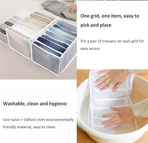 Organizer Cassetti Armadio Scatole portaoggetti Pieghevole In Rete Cassetti Organizer con 7 Scomparti per Pantaloni, Jeans, Leggings 2 Pezzi