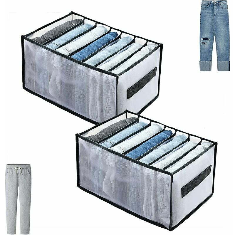 DIMENSIONE: Il set di 2 cassettiere con le dimensioni di 25x36x20cm u 7 scomparti con maniglia, più facile da prendere.Perfetto per riporre jeans, pantaloni cropped, culottes, leggings, pantaloni dritti, pantaloni a zampa, ecc. .nel gabinetto più grande, riunito con;