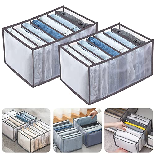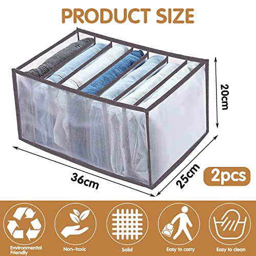 Organizer di Cassetti, 2 Pezzi Scatola Portaoggetti Pieghevole in Rete, Armadio Portaoggetti Per Scomparti Jeans, Organizzatore Di Separazione In Rete, 7 griglie, Per jeans, gonne, maglietta (Grigio)