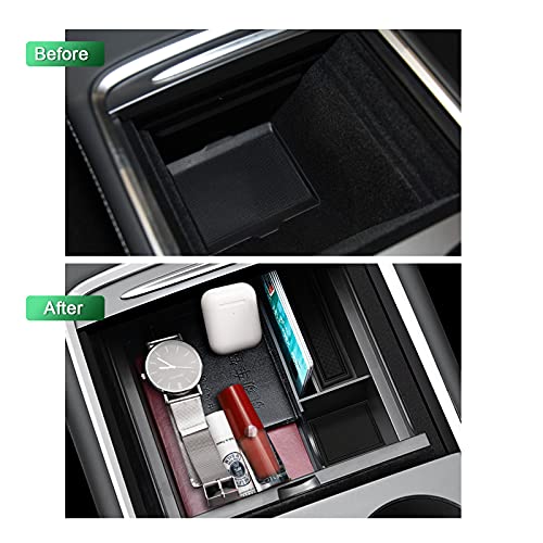 YEE PIN Organizer per console centrale Tray 2021 Tesla Model 3 Model Y scatola portaoggetti portaoggetti portaoggetti per bracciolo organizer accessori con tappetino antiscivolo