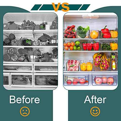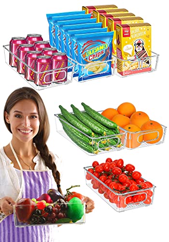 Organizer Frigorifero Set di 6 Contenitori Frigo Trasparente Organizzatore Frigorifero con Manico 6 Pezzi Organizer Cucina Senza BPA Salvaspazio Contenitori Portaoggetti per Frigorifero, Medio