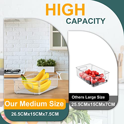 【6 Set di Organizzatori per Frigorifero Medio】 Questo contenitori salvaspazio per stanza ha una capacità maggiore e le dimensioni sono 26,5 x 15 x 7,5 cm (L x P x A). La dimensione del contenitore è più adatta allo spazio del frigorifero o dell'armadio. Gli organizzatori portano ordine nel tuo frigorifero, mobili da cucina, scaffali e molto altro ancora.
