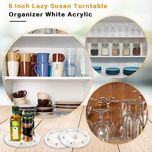 4 Organizer di Giradischi da 6 Pollici Vassoio Girevole in Acrilico Trasparente Base Girevole per Display Portaspezie Rotante Accessori da Cucina Portaoggetti per Spezie Torte Olio Tavolo