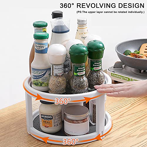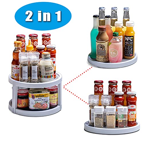 Organizer Lazy Susan a doppio ripiano per armadio Pantry, mobiletto girevole per spezie, portaspezie, per barattoli, portaspezie rotante, per armadio e frigorifero