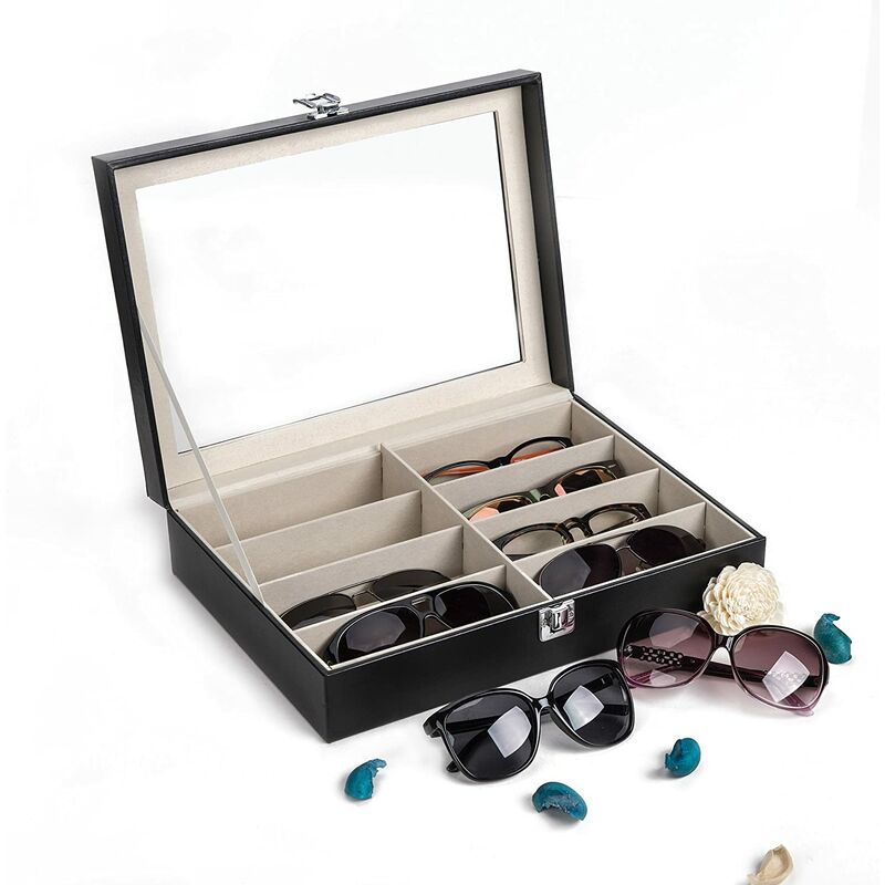 Non il solito organizer per occhiali - Viene fornito con 8 scomparti, perfetti per riporre i tuoi occhiali da sole, con l'aiuto di un divisorio (NON incluso) può essere facilmente trasformato in un meraviglioso organizer per i tuoi gioielli e orologi Ottimo posto per le tue collezioni - Realizzato in pelle PU resistente all'umidità accentuata con interni morbidi per un aspetto elegante e lussuoso, rendendo una casa perfetta per tutte le tue collezioni di occhiali, orologi, gioielli ecc. Più facile scegliere uno stile - La parte superiore in acrilico trasparente ti consente di vedere facilmente attraverso la scatola, rendendo super pratico scegliere un paio di occhiali o un orologio da abbinare al tuo outfit < p>Organizer con serratura e antipolvere - Il coperchio ripara il tuo oggetto preferito da polvere e umidità eccessiva, assicurandosi che siano come nuovi di zecca per gli anni a venire, l'organizer con serratura offre ancora più sicurezza