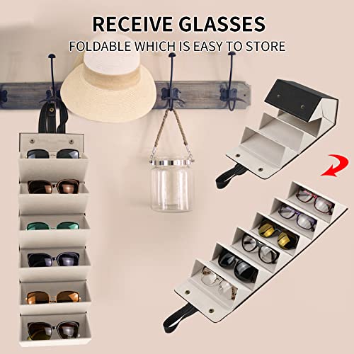Organizer per Occhiali da Sole con 6 Slot,Sole Scatola Piegabile Occhiali Display Scatola per Organizer Pelle Porta Occhiali Sole Nero Custodia per Occhiali Multipli Viaggio Custodia Occhiali Sole