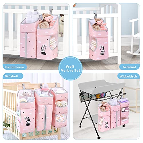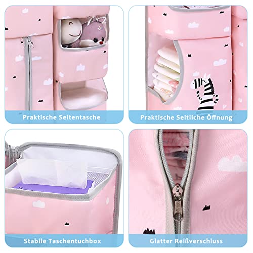 Organizer Pannolini da Appendere per Fasciatoio Borsa da Culla Neonato Porta Pannolini Portaoggetti da Appendere Bambini per Pannolini Giocattoli e Vestiti, 3 IN 1 Rosa