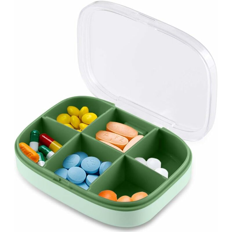 VITA SANA - Materiali per uso alimentare, portapillole 100% privo di BPA, non tossico e insapore, ti semplificano la vita e facilitano l'organizzazione della pillola in modo rapido e senza tempo.PERFETTO PER I VIAGGI - Il design piccolo, leggero, maneggevole, portatile e compatto rende questo portapillole perfetto per la tua borsa, valigia o borse da viaggio.la qualità delle nostre custodie e proteggeranno efficacemente il medicinale sicuro per te tutto il tempo.FACILE DA USARE - Design compatto e portatile, pur mantenendo il medicina ordinata e ordinata, ben organizzata per adattarsi al portafoglio, alla borsa, alla valigia e alla console dell'auto. La custodia per medicinali a 6 scomparti offre una varietà di pillole per le attività all'aperto del fine settimana, abbastanza grande da contenere anche le vitamine o le pillole più grandi.AMPIO UTILIZZO - Adatto a uomini, donne e bambini. Particolarmente utile per gli anziani.