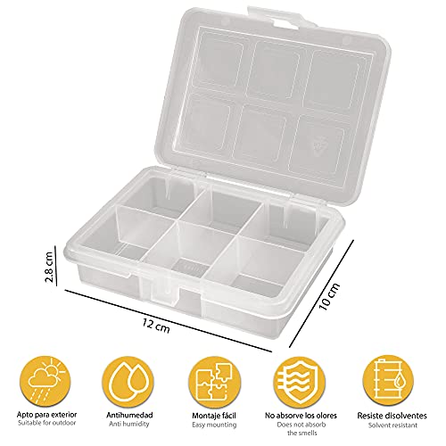 Organizer in plastica trasparente con 6 scomparti L120xP100xH28 mm