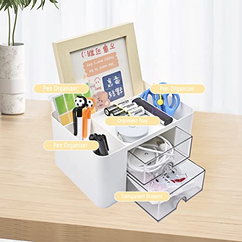 Lre Co. Organizer da scrivania con cassetto, portapenne, cassetti bianchi, organizer da ufficio con 7 scomparti, organizer da tavolo multifunzione, bianco