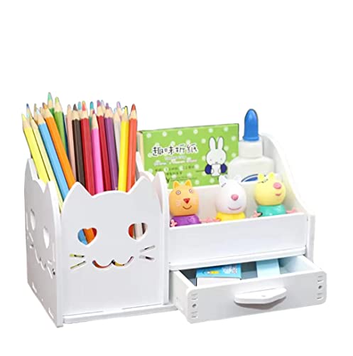Organizer da scrivania multifunzione portapenne a rete con design gatto bianco per bambini scrivania in legno cancelleria organizer per scrivania da ufficio fai da te assemblare