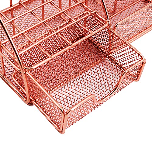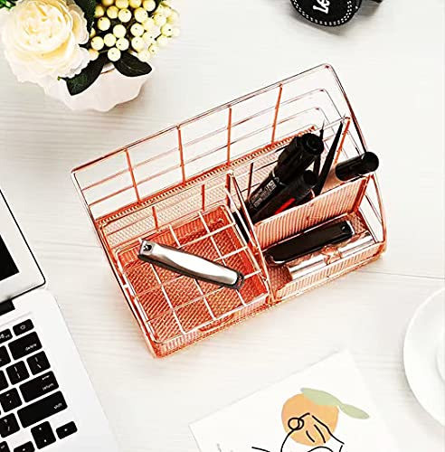 Organizer da scrivania,Portaoggetti scrivania Multifunzione in Metallo,con cassetto,Organizer cancelleria Accessori perUfficio (oro rosa )