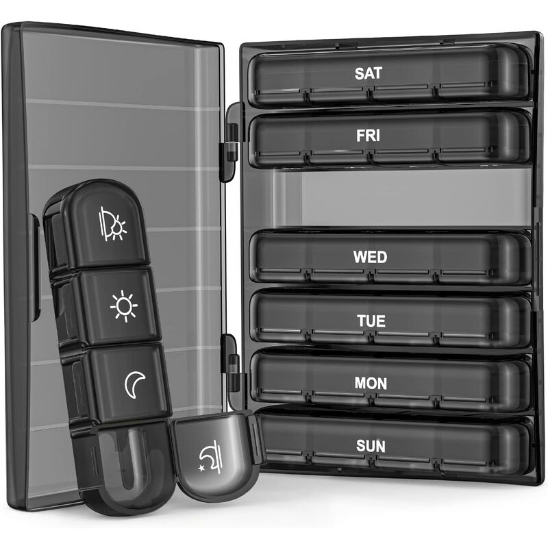 CONSERVAZIONE SETTIMANALE VITAMINE: L'organizer porta vitamine ha un ampio spazio per 7 oli di pesce o 9 grandi vitamine per scomparto. Puoi pianificare il tuo programma vitaminico giornaliero con un giorno di anticipo o settimanalmente. 7 giorni separati: Puoi facilmente imballare l'intero contenitore da 7 giorni per viaggiare o utilizzare il contenitore separato per tutti i giorni da portare in borsa. DOPPIO DI PROTEZIONE: Non preoccuparti del tuo tocco accidentale o delle mani subdole dei tuoi bambini, l'organizer portapillole Week è doppiamente sigillato, quindi il coperchio del pianificatore di pillole rimarrà sempre chiuso e non salterà fuori dalla borsa o dalla borsa. Senza BPA: I nostri distributori di pillole sono realizzati in plastica alimentare di alta qualità e sono privi di BPA per un uso sicuro nella vita quotidiana. La scatola dei medicinali non è tossica, innocua e non ha odore particolare. Vendiamo solo scatole per pillole, non altri articoli nella foto. A causa