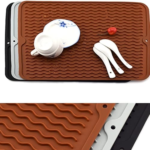 Asciugatura rapida e facile da pulire: il tappetino per asciugare è realizzato in silicone di prima qualità e adatto agli alimenti. Asciugare i piatti è senza rischi. Le esclusive scanalature larghe non solo aumentano il flusso d'aria per un'asciugatura più rapida, ma prevengono anche la crescita di muffe e muffe e facilitano la pulizia. Lavabile in lavastoviglie. La spazzola per la pulizia migliorata con manico ti aiuta a tenere facilmente la spazzola e pulire facilmente il tappetino.