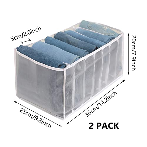 2 organizer per vestiti, in rete, pieghevole, per sciarpe, jeans, cassetti con 7 x 2 scomparti