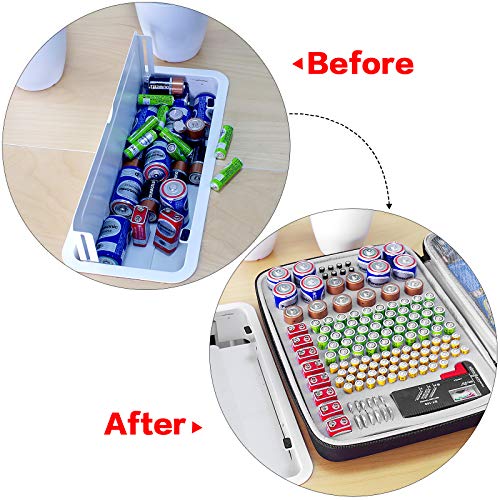 Organizzatore batteria Conservazione Scatola con tester batteria (BT168), custodia per custodia adatta per 140 batterie AA AAA AAAA 9V C D litio 3V (batterie non incluse)