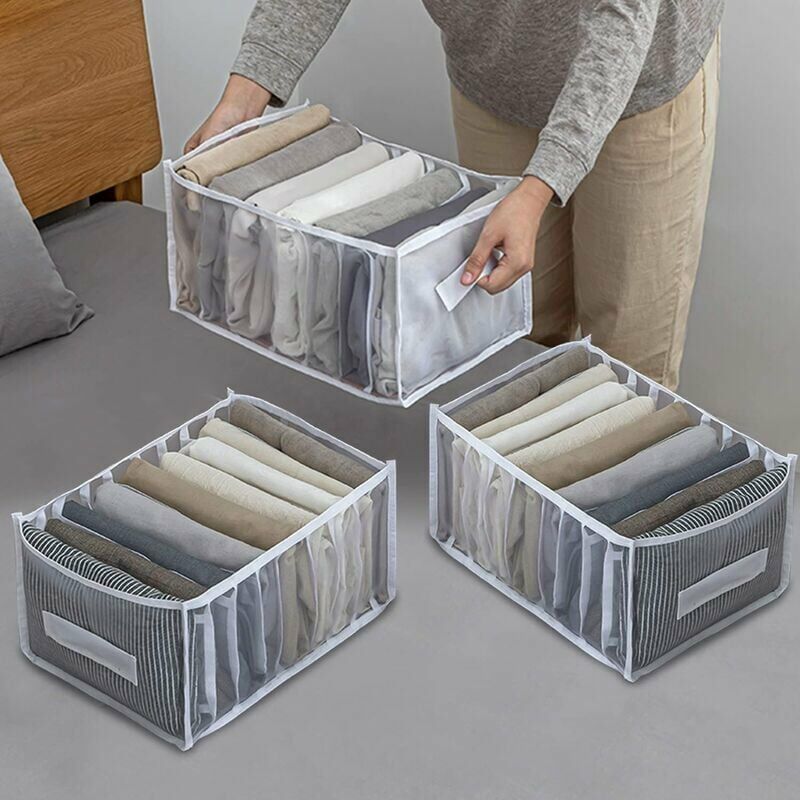 all'interno, riduce gli odori e mantiene i vestiti freschi. La struttura tridimensionale di questa scatola porta pantaloni è diritta e può essere presa e posizionata in modo indipendente senza deformazioni. � Varie specifiche: questa scatola porta pantaloni contiene una varietà di specifiche, 3 set (7 scomparti + 9 scomparti + 9 scomparti), 7 scomparti, dimensioni 36 x 25 x 20 cm. 9 scomparti, dimensioni 44 * 28 * 22 cm possono contenere jeans, pantaloni. Durevole, inodore, facile da pulire. facile da pulire e utilizzare senza esitazioni. � Risparmia tempo e spazio: design pieghevole. La scatola porta pantaloni ha una griglia diversa, pregevole fattura e cuciture lisce. Materiale lavabile, facile da lavare. pulire. Scatola porta pantaloni completamente