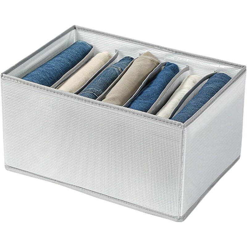 Numero di griglie: 7 Organizer per jeans 36 x 25 x 20 cm Set da 2 per aumentare la capienza del guardaroba di jeans e pantaloni. Ideale per riporre biancheria intima, calzini, sciarpe, leggings, gonne, t-shirt o altri oggetti Realizzato in rete in PVC resistente di alta qualità + pannello in PP, antitarme, traspirante, impermeabile, resistente, leggero ed ecologico, morbido e traspirante, può ridurre efficacemente l'odore dei vestiti, mantenere i vestiti freschi e non deformati e mantenere i vestiti nelle loro condizioni originali dopo essere stati restaurati. L'organizer per jeans ha 7 scomparti per riporre vestiti facili. Non solo puoi trovare facilmente i vestiti che desideri, organizzare i tuoi vestiti per un facile accesso, evitare disordine, ma anche migliorare il tasso di utilizzo dei vestiti nel tuo armadio.La scatola non viene utilizzata solo per pantaloni, leggings, t-shirt, ma può essere utilizzato anche per organizzare biancheria intima e calzini, cravatte, cinture