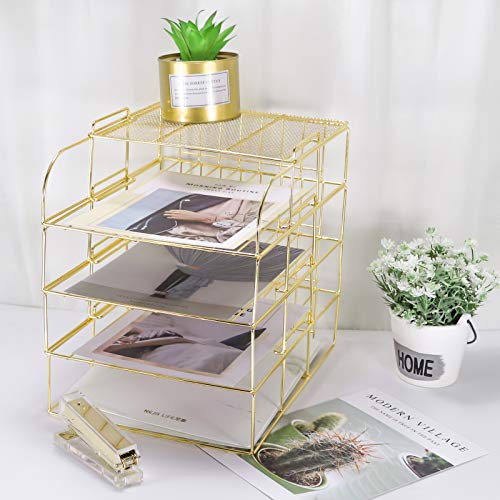 ▶Vassoio Documenti Impilabile: 4 strato di vassoio, ed il design impilabile consente di metterli insieme o in posizioni diverse per un uso flessibile. Puoi ordinare e archiviare rapidamente libri, riviste, quaderni, ricette, dizionari, fumetti, cartelle, cancelleria e altri accessori da scrivania in base alle tue esigenze per rendere più ordinato il tuo desktop.