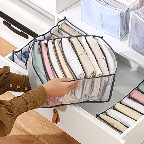 Organizzatore di Vestiti per Guardaroba Lavabile, organizzatore per cassetti per Vestiti, organizzatori per Armadio a 7 Griglie e cestini portaoggetti, Pieghevole Portatile (Gray,2)