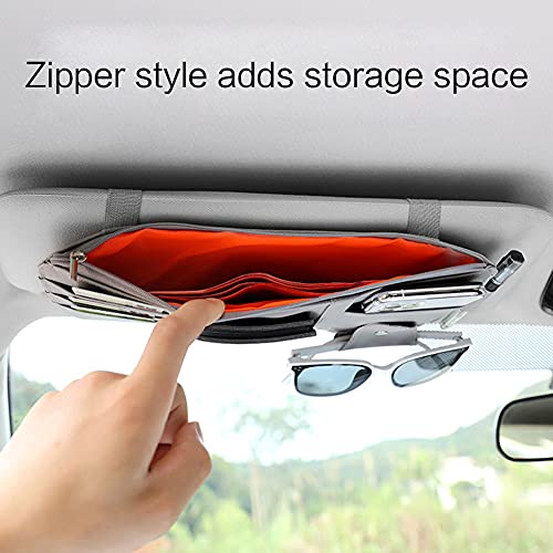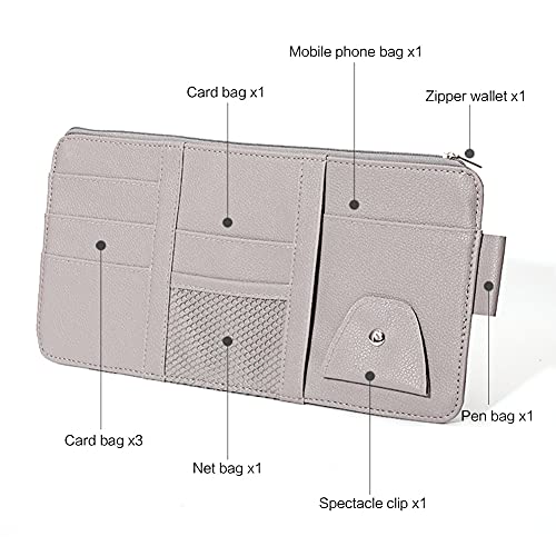 Organizzatore per Visiera Parasole per Auto,MoreChioce Portatile Multifunzionale Organizer Card Holder Borsa Stoccaggio con Cerniera Custodia Borsa per le Parasole della Maggior Parte Auto,Beige
