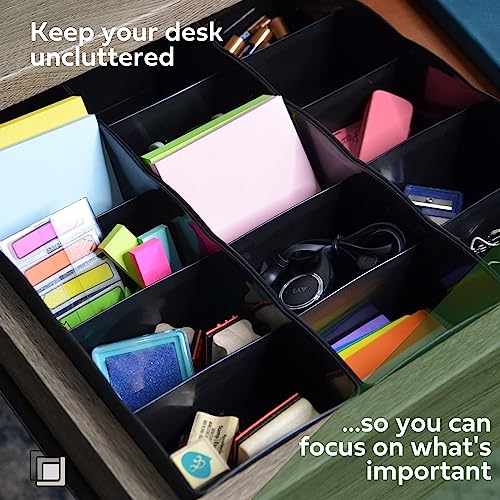 Organizzatori per Cassetti Uncluttered Designs (Set di 5) Con 5 Griglie in Durevole Plastica impilabili per Biancheria Intima, Artigianato, Indumenti per Bambini, Ufficio, Bagno e Conservazione (Nero)