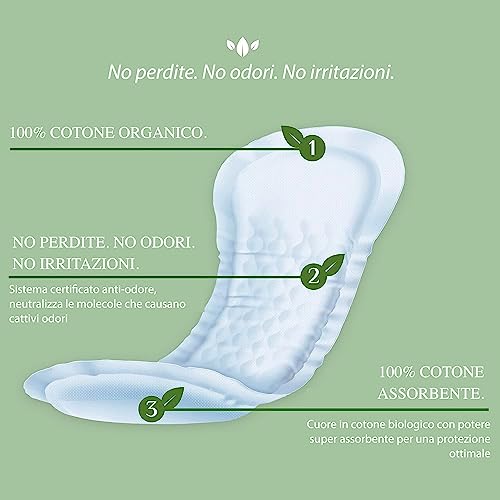 COTONE 100% BIOLOGICO - gli assorbenti in cotone organyc per perdite urinarie proteggono da odori, umidità e irritazione della pelle con un'assorbenza bilanciata dal cotone che allontana l'umidità