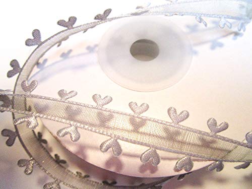 Organza ribbon - Nastro di organza cuore da 15 mm, lunghezza 10 m: Argento
